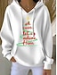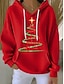 Жен. Толстовка с капюшоном и пуловером Графика Новогодняя ёлка На каждый день Длинный рукав Капюшон Обычные топы На каждый день Повседневные Спорт Черный Белый Красный Осень Зима