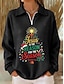 Жен. Пуловер Толстовка Графика Новогодняя ёлка На каждый день Длинный рукав Половина молния Обычные топы На каждый день Повседневные Спорт Синий Черный Розовый Красный Зеленый Осень Зима