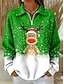 Жен. Пуловер Толстовка Графика Уродливое Рождество Бокал для вина На каждый день Длинный рукав Половина молния Обычные топы На каждый день Повседневные Спорт Синий Черный Розовый Красный Зеленый