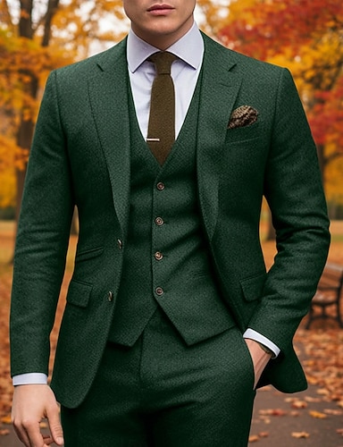зеленые мужские свадебные твидовые костюмы однотонные из 3 предметов ретро винтаж большие размеры однобортные на двух пуговицах