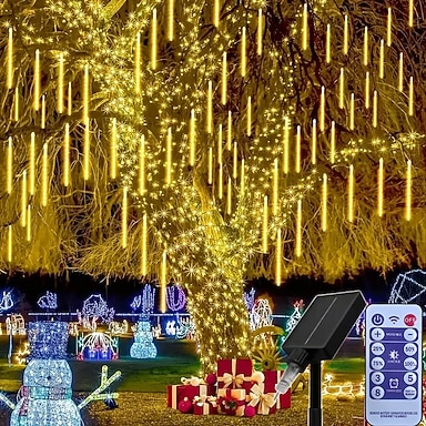 0.3м Гирлянды Пульты управления 384 светодиоды Тёплый белый Белый Синий Огни метеоритного дождя Работает от солнечной энергии Для вечеринок На открытом воздухе Солнечная энергия