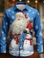 Новогодняя тематика Муж. Дед Мороз Новогодняя ёлка В снежинку Рубашка Кнопка рубашка Длинный рукав Веселая Новогодние подарки Праздники Весна Осень Отложной 3D печать рубашки с воротником Синий 1