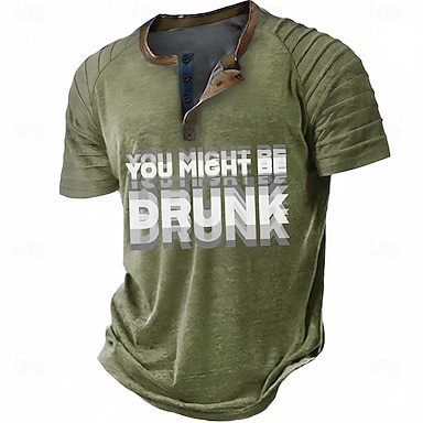 Муж. Головокружительный Текст Рубашка Хенли футболка реглан С короткими рукавами Мода Оригинальный рисунок На каждый день на открытом воздухе Отпуск Повседневные Лето Черный Серый Зеленый Цвет хаки