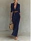 Жен. Длинное платье Платье A-силуэта Отпуск На каждый день Повседневные Стандартный Полотняное плетение Длинный рукав Рубашечный воротник Черный Винный Темно синий Коричневый Весна Осень Зима