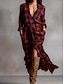 Жен. Женский Повседневное платье длинное платье платье макси Черно-белый С короткими рукавами Абстракция Геометрический Лето V-образный вырез Рубашечный воротник Отпуск Современное XS S M