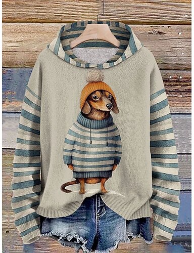 Жен. Толстовка с капюшоном и пуловером С собакой Полоски На каждый день Длинный рукав Капюшон Обычные топы Для улицы На каждый день Черный Красный Синий Оранжевый Зеленый Осень Зима