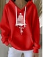 Жен. Толстовка с капюшоном и пуловером Графика Новогодняя ёлка На каждый день Длинный рукав Капюшон Обычные топы На каждый день Повседневные Спорт Черный Красный Зеленый Осень Зима