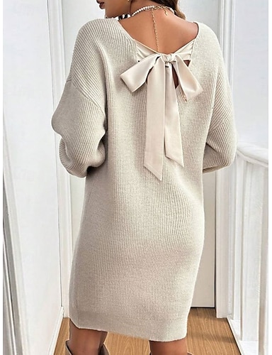 Жен. Мини-платье Платья из поли-хлопка и льна с текстурой Рождественское платье Платье-свитер Вязаное платье Современное Рождество На выход выходные Свободное облегание