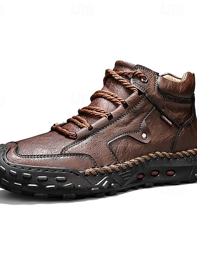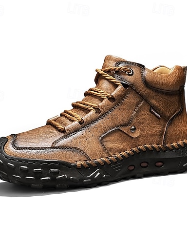 Мужские коричневые ботинки для походов из искусственной кожи с прочной резиновой подошвой и отделкой ручной работы, удобные рабочие ботинки для походов и повседневной носки