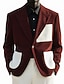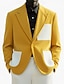 Муж. Вельветовый пиджак Пиджак Закрытие воротника Мода Классика На каждый день Пэчворк Однотонный Blazer Желтый Бордовый Коричневый Узкий крой Однобортный с 1 пуговицей