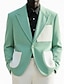 Муж. Пиджак Льняной блейзер Закрытие воротника Мода Легкие Офис Однотонный Blazer Льняной блейзер Небесно-голубой Полупрозрачный зеленый Узкий крой Однобортный с двумя пуговицами