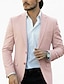 Муж. Пиджак Льняной блейзер Воротник с вырезом Классика Однотонный Blazer Льняной блейзер Белый Розовый Небесно-голубой Узкий крой Однобортный с двумя пуговицами
