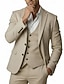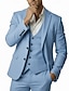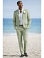 Мужской Льняные костюмы Свадьба на пляже Небесно-голубой Полупрозрачный зеленый Весна лето Куртка Лацкан с тупым углом Легкие Формальная Однотонный Узкий крой Набор из 3 предметов Однобортный с 2