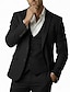 Мужской Костюмы для вечеринок Повседневные Бизнес Черный Весна, осень, зима, лето Костюм Лацкан с тупым углом Формальная Однотонный Приталенный крой Набор из 3 предметов Однобортный с 2 пуговицами
