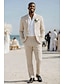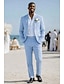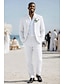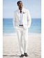 Мужской Льняные костюмы Свадьба на пляже Белый Небесно-голубой Весна лето Костюм Лацкан с тупым углом На каждый день Формальная Однотонный Приталенный крой Набор из 2 предметов Однобортный с 2