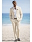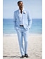 Мужской Льняные костюмы Свадьба на пляже Белый Небесно-голубой Весна лето Костюм Лацкан с тупым углом Формальная Однотонный Приталенный крой Набор из 2 предметов Однобортный с 2 пуговицами