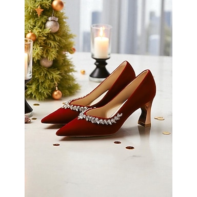 Женские замшевые ботильоны бордового цвета с блочным каблуком — зимняя обувь в стиле ретро для женщин, повседневных и полуофициальных образов.