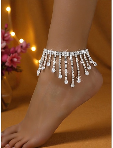Женский золотой браслет на лодыжку с бахромой из стразов — блестящая цепочка с подвесками из кристаллов для вечеринок, пляжа и вечерних мероприятий