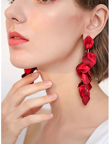 женские эффектные красные атласные серьги-подвески — элегантный многослойный дизайн с лепестками для модных вечеринок, коктейльных мероприятий и вечерних нарядов