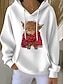 Жен. Толстовка с капюшоном и пуловером Графика Дед Мороз Рождество На каждый день Длинный рукав Капюшон Обычные топы Вечерние наряды Для улицы На каждый день Черный Розовый Красный Весна Осень Зима