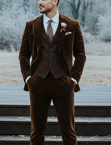 Мужской Смокинги Костюмы для вечеринок Повседневные Бизнес Коричневый Наступила зима Костюм Лацкан с тупым углом Повседневные Формальная Однотонный Узкий крой Набор из 2 предметов