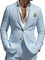 Мужской Льняные костюмы Свадьба на пляже Белый Небесно-голубой Весна лето Костюм Лацкан с тупым углом Формальная Однотонный Узкий крой Набор из 2 предметов Однобортный с 2 пуговицами