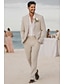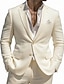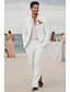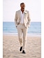 Мужской Льняные костюмы Свадьба на пляже Белый Полупрозрачный зеленый Весна лето Костюм Лацкан с тупым углом Формальная Однотонный Узкий крой Набор из 2 предметов Однобортный с 2 пуговицами