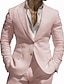 Мужской Льняные костюмы Свадьба на пляже Повседневные Белый Розовый Весна лето Костюм Лацкан с тупым углом Мода Повседневные Однотонный Узкий крой Набор из 2 предметов Однобортный с 1 пуговицей