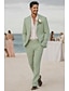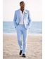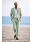 Мужской Смокинги Льняные костюмы Для вечеринок Свадьба Небесно-голубой Полупрозрачный зеленый Весна лето Костюм Лацкан с тупым углом Мода Легкие Однотонный Узкий крой Набор из 2 предметов