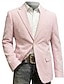 Муж. Льняной блейзер Воротник с вырезом Мода Легкие Однотонный Blazer Льняной блейзер Белый Розовый Небесно-голубой Узкий крой Однобортный с двумя пуговицами