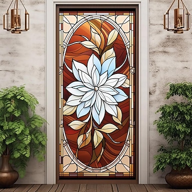витражи цветочные дверные покрытия фреска декор дверной гобелен дверной занавес украшение фон дверной баннер съемный для входной двери в помещении и на открытом воздухе украшение для дома и комнаты