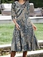 Жен. Платье средней длины Повседневное платье Платье с принтом Мода Современное на открытом воздухе Отпуск Повседневные Стандартный Цветочный принт Абстракция Длинный рукав V-образный вырез Серый