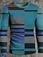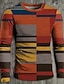 Муж. Геометрический принт В клетку 3D Футболка Длинный рукав Футболка 3D печать Вырез под горло Рубашка Мода преувеличены Для улицы Повседневные Синий Красный ржавчина Коричневый Лето Весна Осень