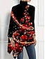 Новогодняя тематика Жен. Футболка Графика Рождество На каждый день Длинный рукав Хомут Вырез под горло Длинные топы Повседневные С принтом Асимметричный вырез Черный Весна Осень Зима