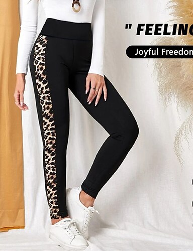 Жен. Леггинсы-капри Леггинсы для йоги Утягивание живота Завышенная Тренажерный зал Танцы Спортивная Нижняя часть Леопард Черный Осень Виды спорта Спортивная одежда Плотно прилегает