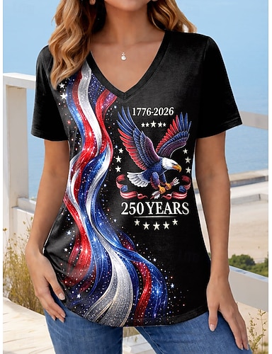 День независимости США Жен. Футболка С принтом Графика Флаг Стиль Классика На каждый день С короткими рукавами V-образный вырез Обычные топы Повседневные Желтый Красный Лиловый Лето Весна