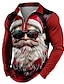 Новогодняя тематика Муж. Дед Мороз Смешной Футболка Длинный рукав Футболка 3D печать Вырез под горло Рубашка Мода Классический 3D Для улицы Повседневные Черный Красный Синий Лето Весна Одежда S M L