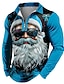 Новогодняя тематика Муж. Дед Мороз Поло Длинный рукав Футболки поло Лацкан На каждый день Праздники На каждый день Фестивальный наряд 3D печать Поло с застежкой-молнией на четверть Весна Осень Зима