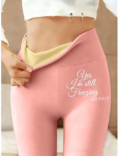 Жен. леггинсы на флисовой подкладке Леггинсы Отпуск Классический На каждый день Полная длина Завышенная Буквы Сохраняет тепло удобный Удобный Эластичная на открытом воздухе Повседневные Праздники