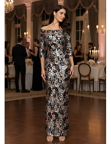 Футляр В пол Выпускные платья Вечернее платье С пышной юбкой Торжественное платье Элегантный стиль Блестящая Стиль знаменитостей Рукав 3/4 С открытыми плечами Официальные Свадьба Кружева с
