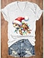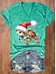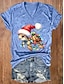 Новогодняя тематика Жен. Футболка Графика Животное Рождество Винтаж Стиль Классика С короткими рукавами V-образный вырез Обычные топы Повседневные С принтом Белый Синий Небесно-голубой Зеленый Серый