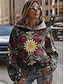 Жен. Футболка Цветочный принт Графика Огурцы Винтаж Стиль Классика Длинный рукав V-образный вырез Обычные топы Повседневные С принтом Черный Красный Синий Пыльно-синий Лиловый Весна Осень Зима