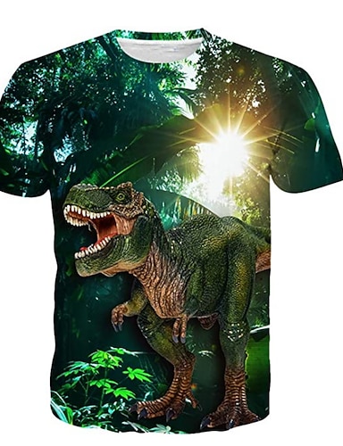 Дети Мальчики Футболка С короткими рукавами Динозавр 3D печать Животное С принтом Серо-зеленый Темно-синий Черный серый Дети Верхушки Лето Активный На каждый день Стандартный 4-12 лет