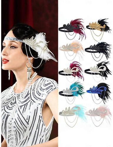 Ретро 1920-е годы Головные уборы Маскарад Обруч в стиле флэппер Нормальная Великий Гэтсби чарльстон Свадебный гость Маскарадный костюм Жен. Хэллоуин Карнавал Маскарад