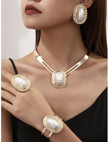 Женский комплект украшений из золотого жемчуга для вечеринки: массивное ожерелье-цепочка, эффектные серьги, браслет и кольцо, элегантные аксессуары в стиле барокко для вечера &официальные мероприятия