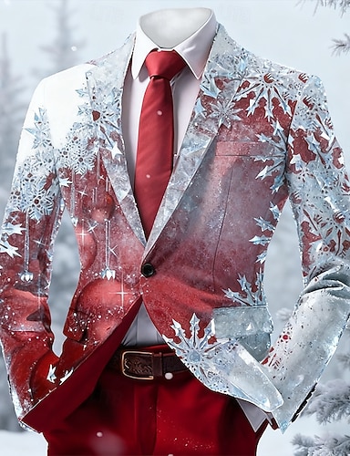 Новогодняя тематика Муж. В снежинку Пиджак Удобный Художественный На каждый день Вечерние наряды Повседневные фестиваль 3D печать Пуговицы Весна Осень Зима Острый Длинный рукав Черный Красный Синий