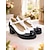 Женские черно-белые туфли с Т-образным ремешком и бантом – винтажный стиль 1950-х годов, удобные блочные каблуки для официальных мероприятий, свадеб и повседневной носки