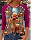 Рождество Женский Рождественский Олень Свитшот Графика Винтажная Повседневная Долгий Рукав Круглый Воротник Обычные Топы Пуговицы Принт Красный Синий Фиолетовый Зеленый Осень Зима