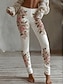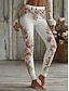 Жен. Леггинсы Уютные леггинсы Отпуск Винтаж Этнический стиль Полная длина Завышенная Цветочный принт Рисунок Удобный Эластичная Отпуск Повседневные Праздники Белый Весна Осень Приталенный крой