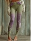 Жен. Леггинсы Уютные леггинсы Отпуск Винтаж Классический Полная длина Завышенная Цветочный принт Рисунок Удобный Эластичная Отпуск Повседневные Праздники Зеленый Весна Осень Приталенный крой